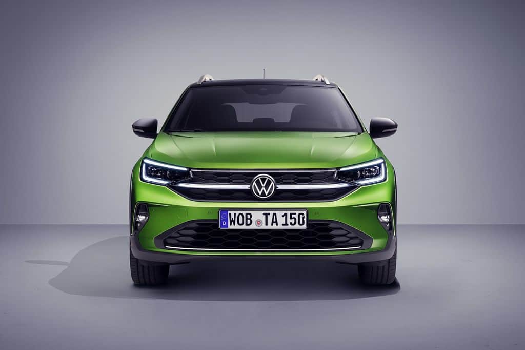 Volkswagen Taigo 2022 là một chiếc SUV lai coupe với một ngoại hình hiện đại, phong cách. Phần đầu xe Taigo 2022 được trang bị lưới tản nhiệt với kích thước vừa vặn, không quá lớn, rãnh lưới được thiết kế hình tổ ong độc đáo. Bên cạnh là cặp đèn pha LED, được bao quanh bởi dải đèn LED định vị ban ngày thanh mảnh. Ngoài ra, dải đèn LED định vị ban ngày còn được đặt ngang giữa lưới tản nhiệt, xuyên qua logo của nhà sản xuất. Phía dưới là hốc gió trung tâm với thiết kế hình thang cùng hai hốc đèn sương mù nằm dọc ở cạnh.