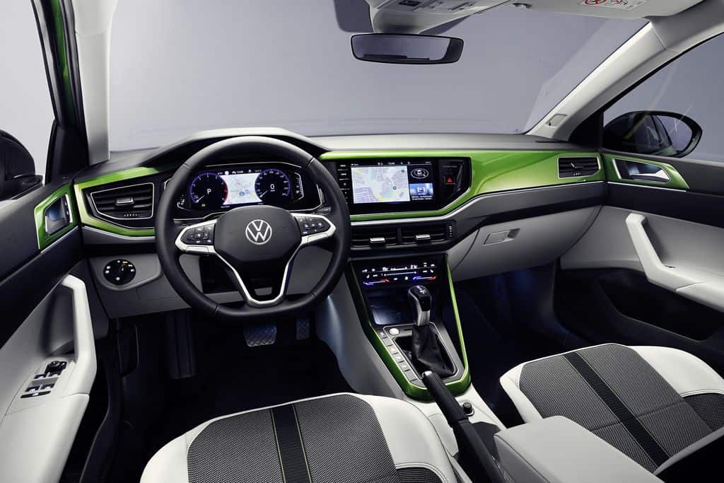 Về nội thất, Volkswagen Taigo 2022 gần như hoàn toàn tương đồng với chiếc Polo phiên bản mới cập nhật gần đây. Như vậy, Taigo 2022 sẽ có được những trang bị tiêu chuẩn như: hệ thống thông tin giải trí MIB3 thế hệ mới nhất của VW được ghép nối với màn hình cảm ứng 6,5 inch hoặc 9,2 inch tùy chọn, ứng dụng kết nối Apple CarPlay và Android Auto không dây, cụm đồng hồ đo kỹ thuật số Digital Cockpit, đèn pha Q.Light matrix LED,… Ngoài ra Taigo 2022 còn có tính năng điều khiển điều hoà cảm ứng và gói IQ.Drive bao gồm một loạt các hệ thống hỗ trợ người lái.
