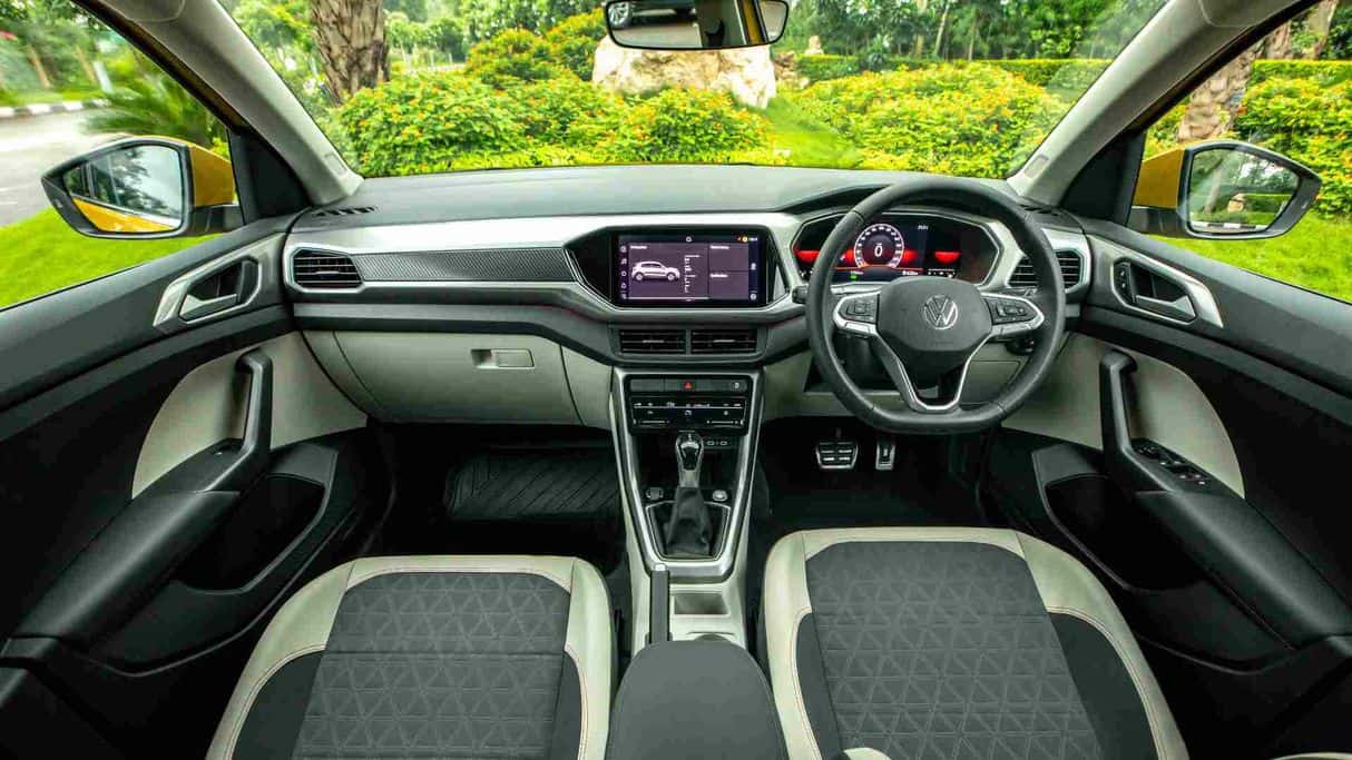 Ở bên trong, Volkswagen T-Cross mang nét thiết kế thuần SUV tương tự ngoại thất với vị trí ghế cao cùng tầm nhìn khá rộng, đi kèm hệ thống thông gió ở hàng ghế trước. Một số trang bị đáng chú ý có thể kể đến trên chiếc SUV hạng B bao gồm màn hình dạng cảm ứng kích thước 10,25 inch, hỗ trợ Apple CarPlay và Android Auto không dây, cụm đồng hồ kỹ thuật số 8 inch, sạc không dây, ga tự động và cửa sổ trời. Thêm vào đó là những tính năng tiện nghi như ga tự động Cruise Control, đèn pha tự động, điều hòa tự động, sạc không dây, 4 cổng USB-C, hệ thống cảm biến gạt mưa tự động,… .