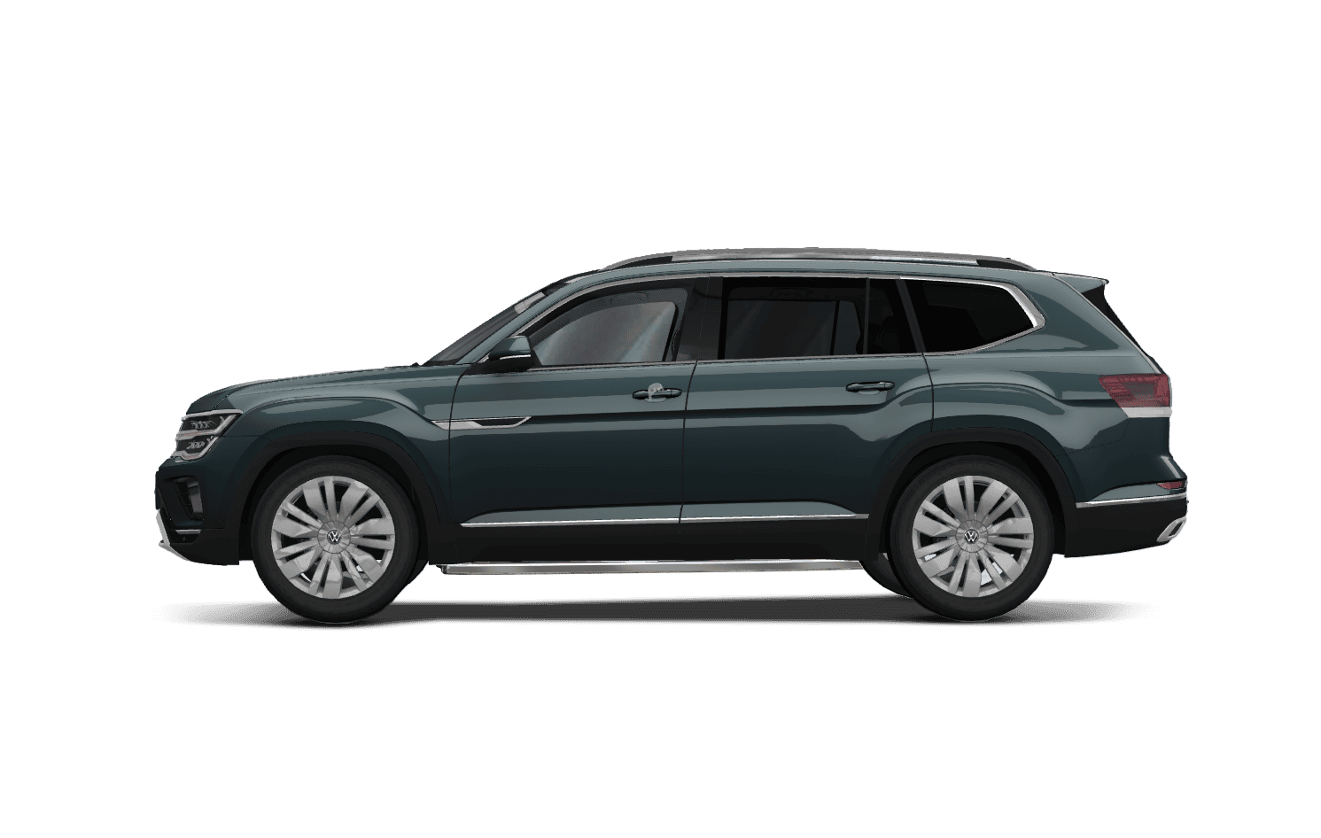 Phía đuôi xe cũng được tô điểm nhấn bởi các thanh viền mạ Chrome và dập nổi tên xe Teramont. Phía dưới cản sau là ống xả kép hình thang mạ crom được đặt bên dưới tấm cản sau. Trên cùng là ăng ten dạng vây cá mập, giúp tăng thêm tính thể thao cho dòng xe SUV này.
